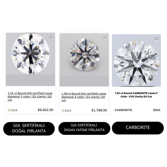 Biz hiçbir kalitenin tarafı değiliz. Bir tektaş için ne düşünüyorsanız artısını eksisini tartışırız ama sonuçta sizin kararınız. Doğal Pırlanta almak istiyorsanız doğal ararsınız insan yapımı is o tercihiniz olacaktır. Karar sizin